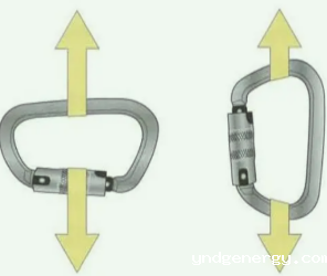 当安全钩是悬空状态时,调整开口向下。在安全钩自身重力的作用下,会使荷载跟安全钩弹力轴保持在一条线上。悬挂完安全钩后,还要检查钩子是否已经锁紧。