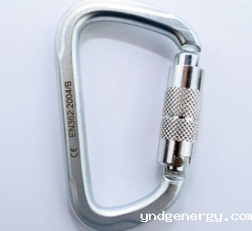 第二种安全钩是D型,它由钩体、锁臂两部分构成,开合机构为弹簧舌自动复位式,锁臂部分有扭转自锁和螺纹手锁两种保险结构设计。