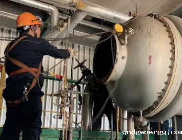 随后,大型吊装设备进场,将旧冷凝器吊运而下,新的冷凝器也顺利被吊装到位并完成安装。此次作业不仅展现了职工们精湛的技术与丰富的经验,更体现了他们在困境中不屈不挠、勇于创新的精神,为芳烃部的稳定生产奠定了坚实的基础。