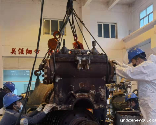 待大盖被成功吊起后,又会小心翼翼地操控着冠航手拉葫芦,将大盖缓缓放置到提前准备好的合适存放位置上。整个过程中,每一个动作、每一个细节都是为了防止大盖出现损坏,毕竟大盖的完好与否关乎着后续维修工作能否顺利开展以及汽轮机能否再次高效投入运行呀。